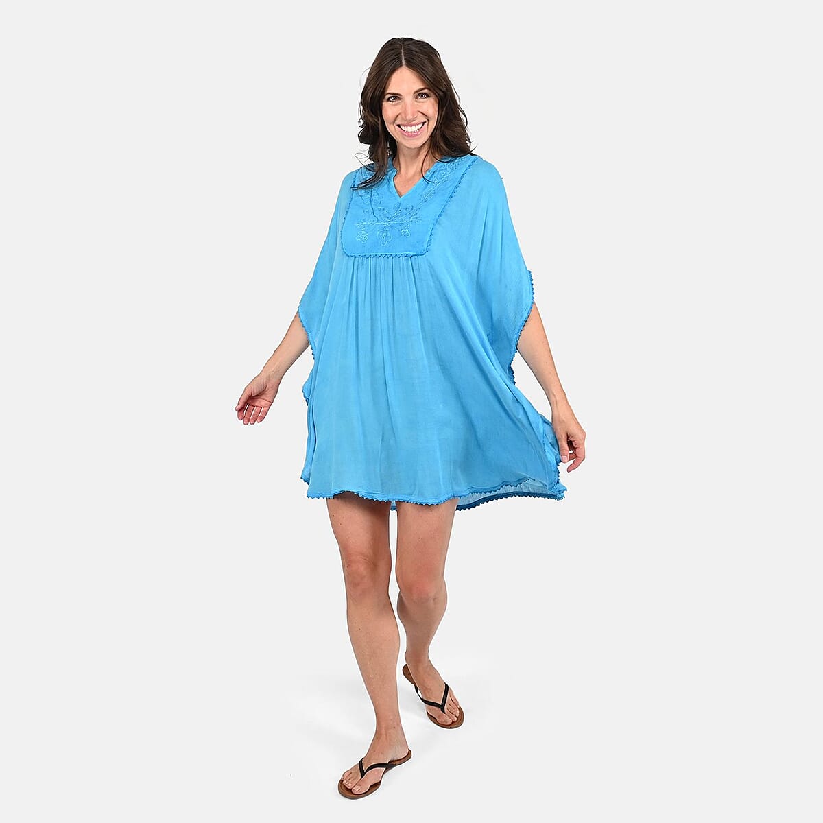 TAMSY Turquoise Embroidered V-Neck Kaftan - One Size Fits Most