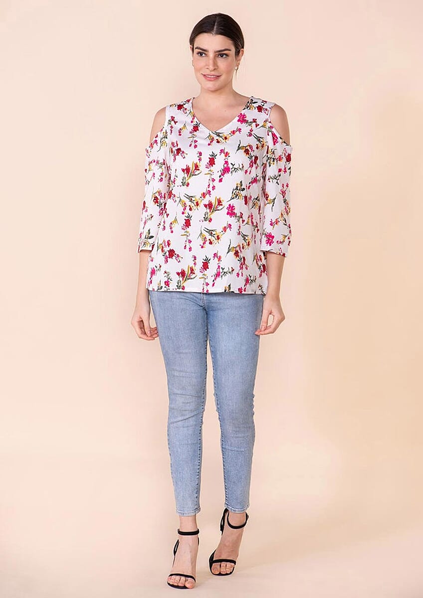 Inspired by nature’s charm, this cold-shoulder top by TAMSY Collection with a beautiful print is perfect for the fall season. The top gives a soft touch to your skin with its soft crepe fabric. The cold-shoulder design, three-quarter sleeves, and round neckline give a finished look to this beautiful top.