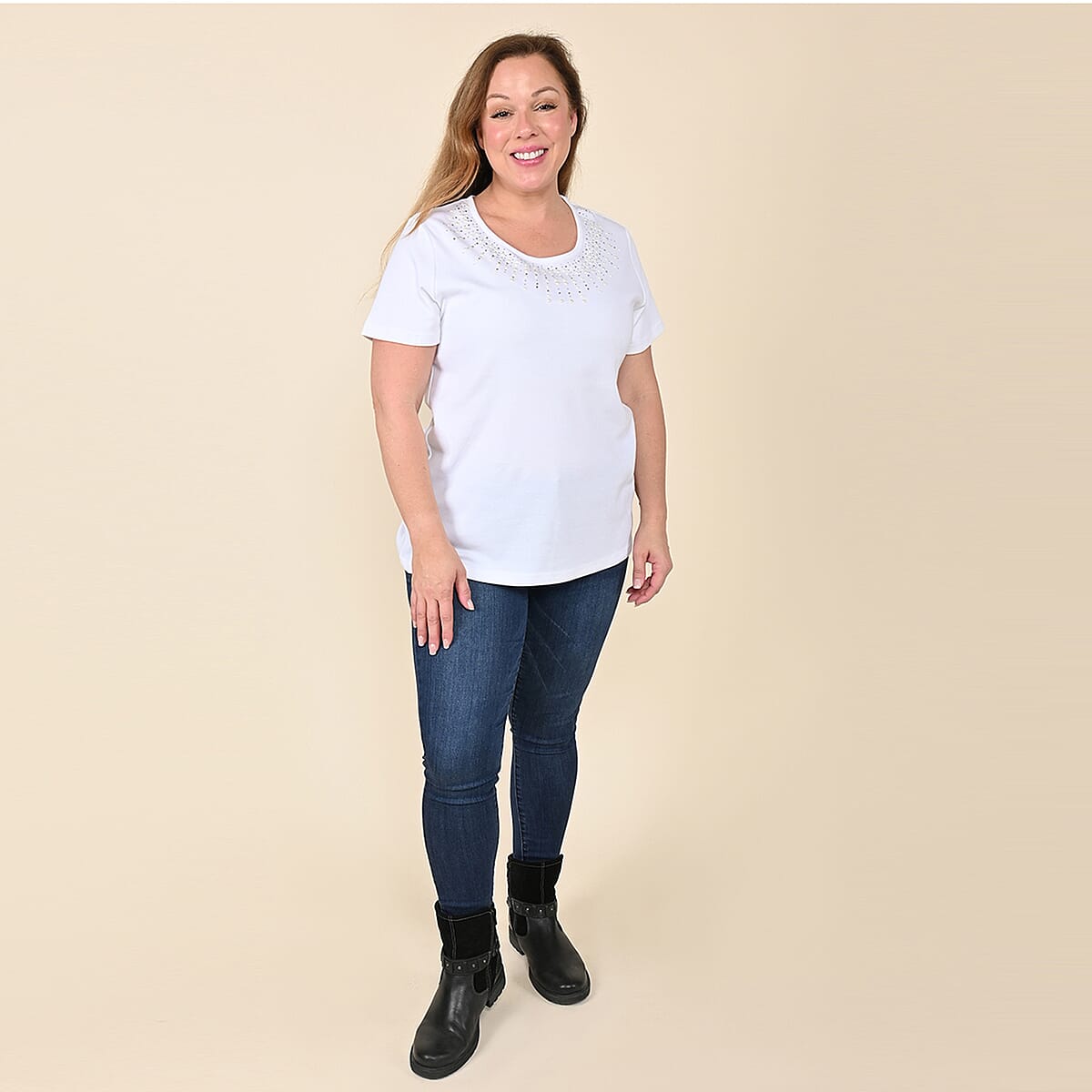 Tamsy White Knit Shirt with Embellished Neck - Medium