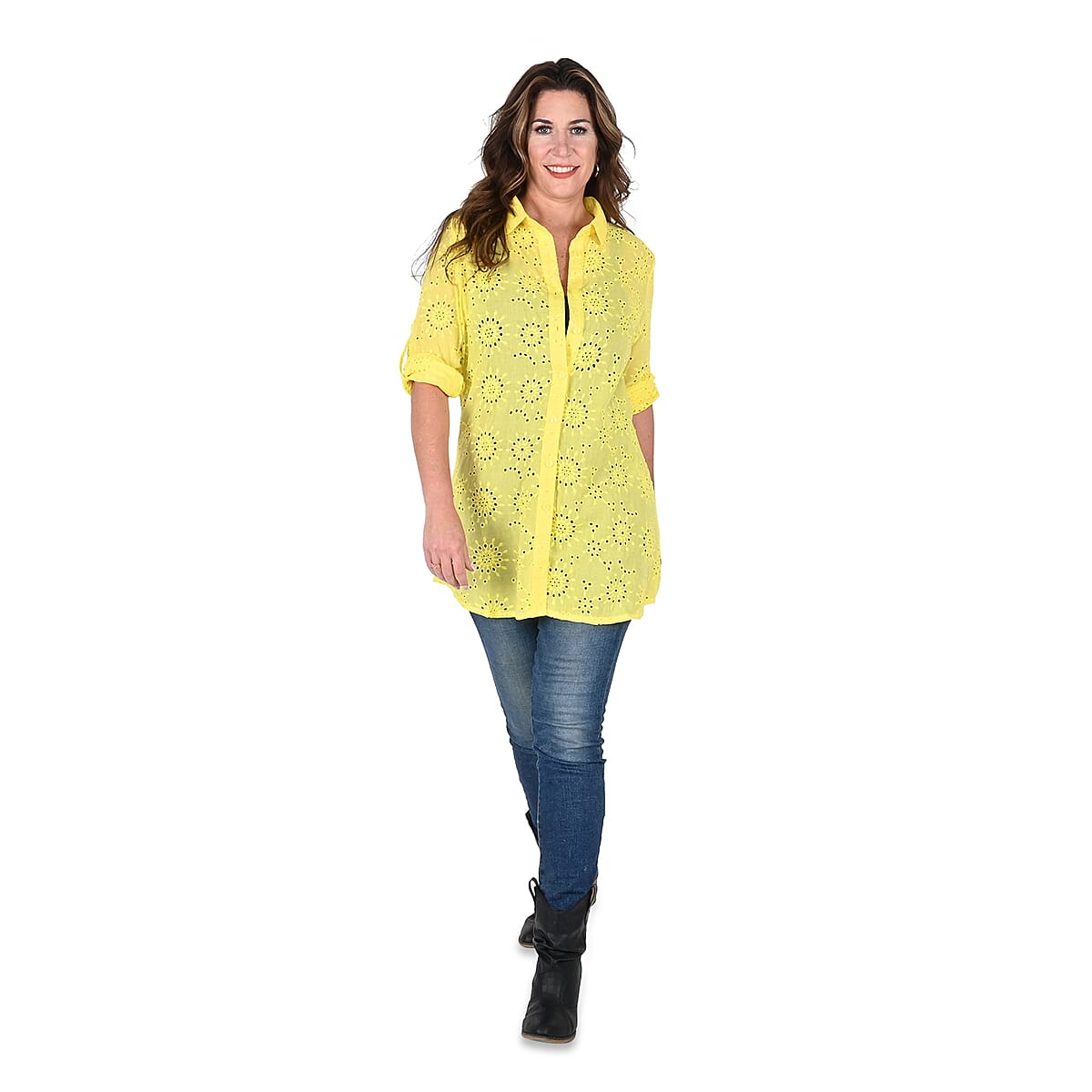 Tamsy Yellow Erin Eyelet Tunic - XL
