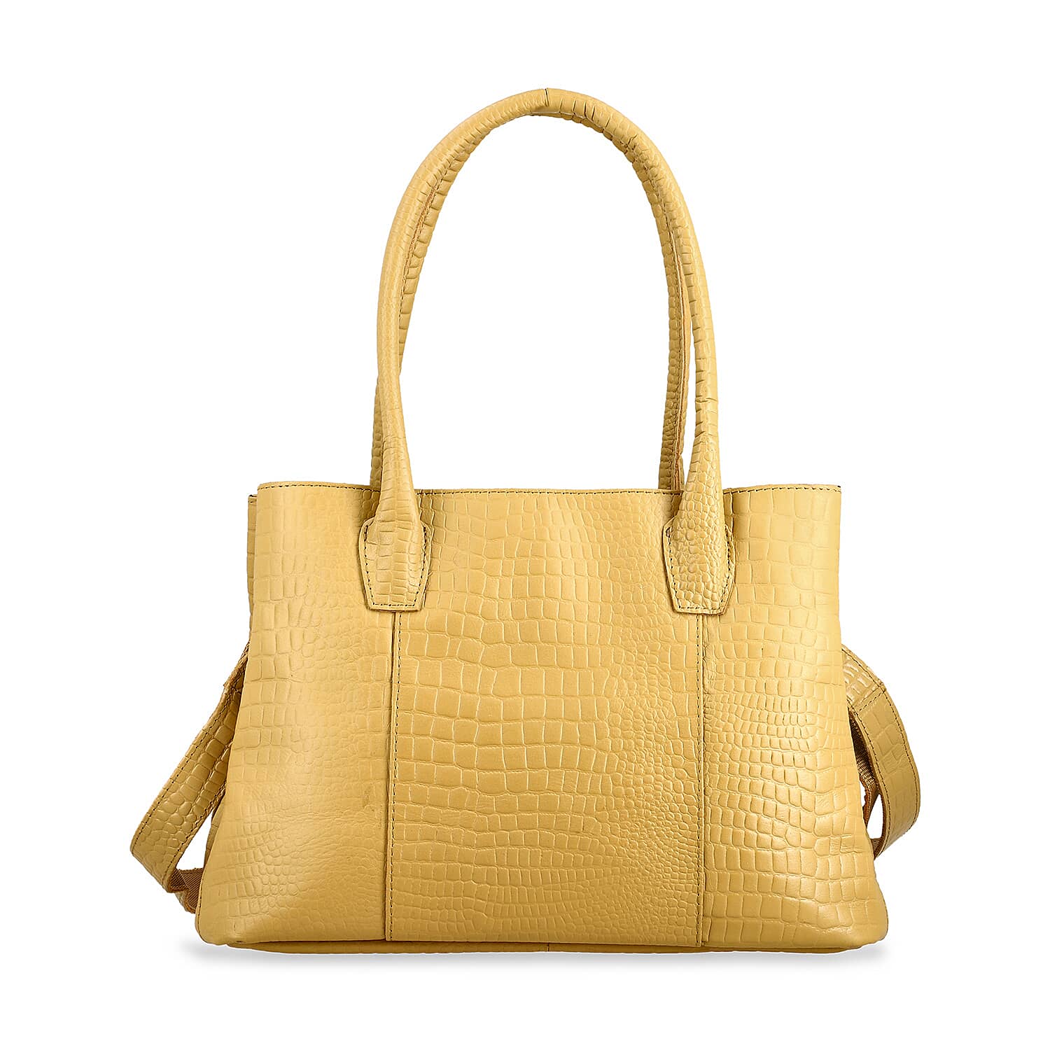 Tan Genuine Leather Croco Embossed Shoulder Bag with Adjustable Shoulder Strap