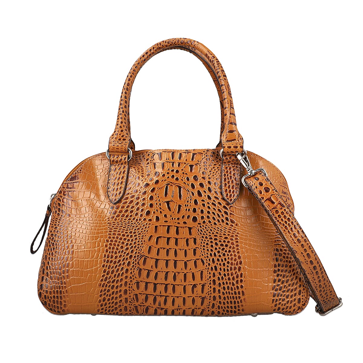 Tan Genuine Leather Croco Embossed Shoulder Bag