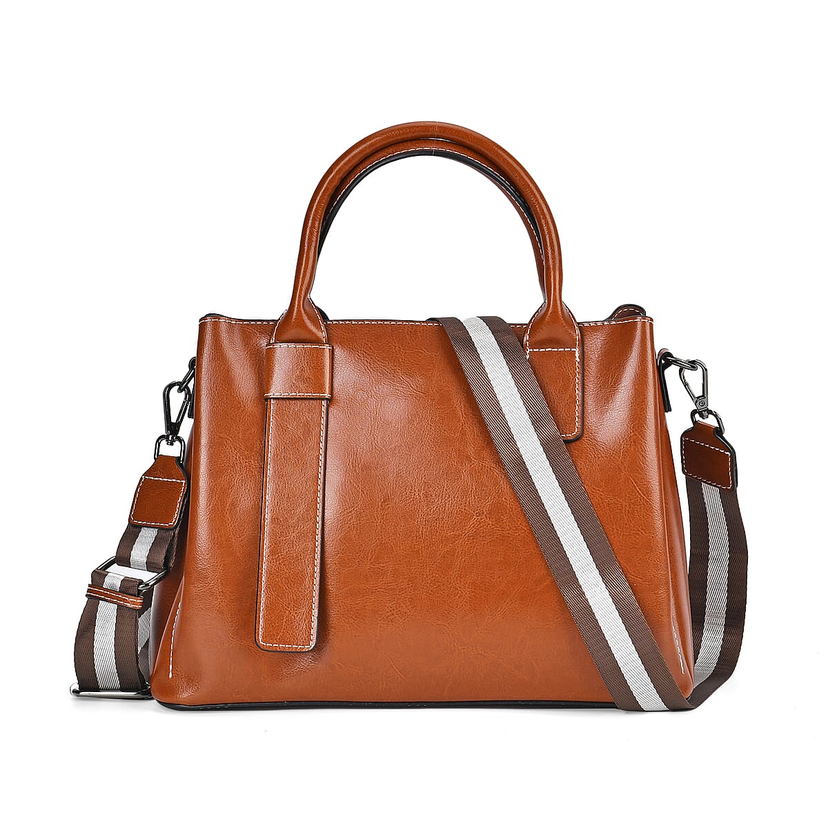 Tan Genuine Leather Crossbody Bag with Handle Drop and Long Shoulder Strap