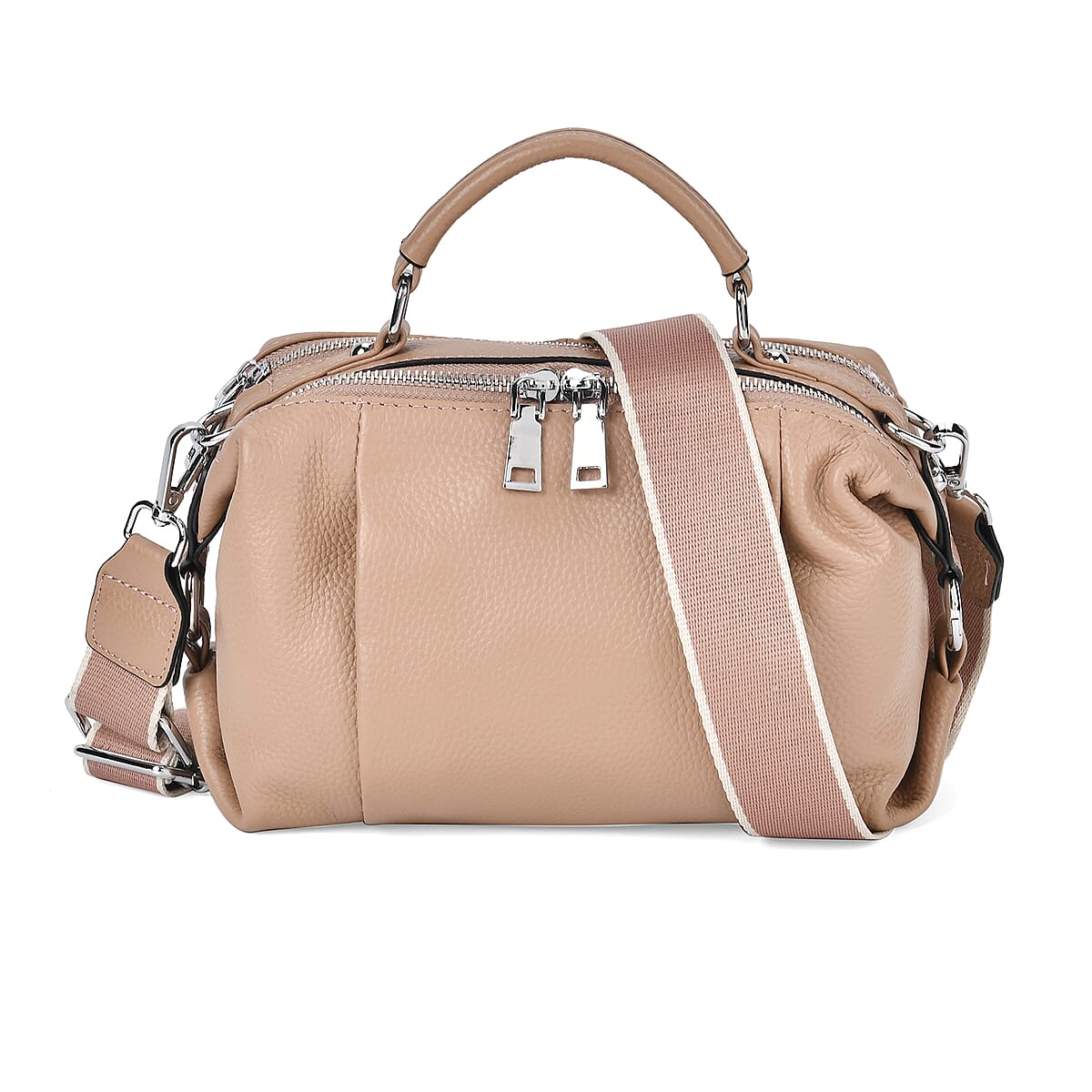 Tan Genuine Leather Crossbody Bag with Multiple Pockets