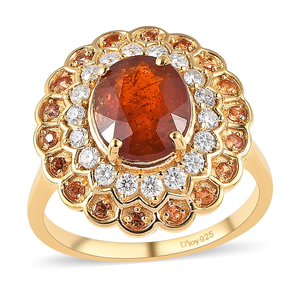 Tangerine Kyanite and Multi Gemstone Double Halo Ring in Vermeil Yellow Gold Over Sterling Silver (Size 7.0) 5.25 ctw
