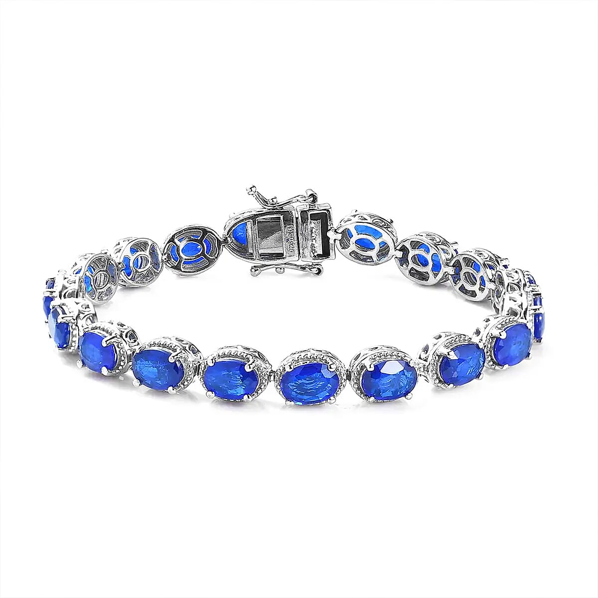 Tanzanian Blue Spinel (DF) 18.75 ctw Tennis Bracelet in Platinum Over Sterling Silver (8.00 In)