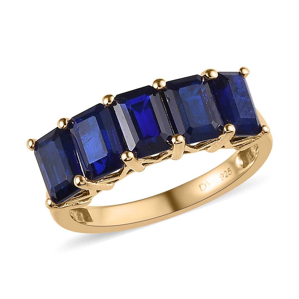 Tanzanian Blue Spinel (DF) 5 Stone Ring in Vermeil Yellow Gold Over Sterling Silver (Size 7.0) 3.25 ctw
