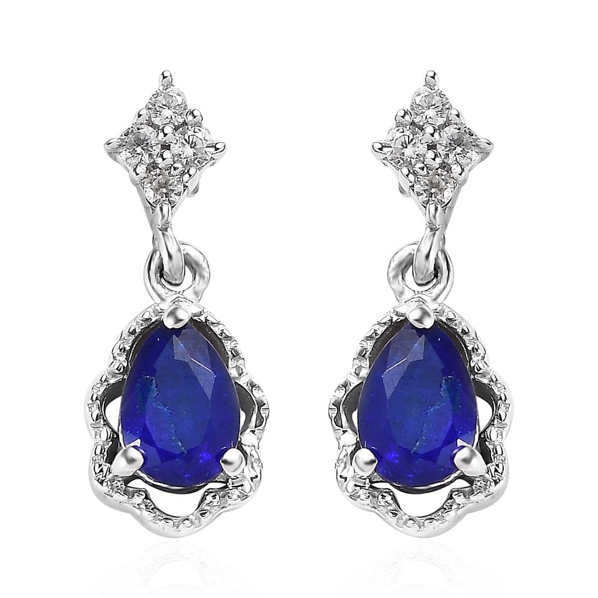 Tanzanian Blue Spinel (DF) and White Zircon Dangle Earrings in Platinum Over Sterling Silver 1.15 ctw
