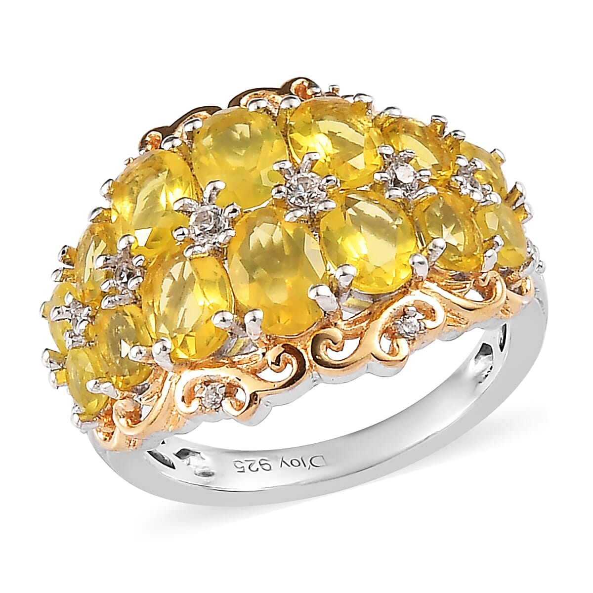 Tanzanian Canary Opal and Natural White Zircon Ring in Vermeil Yellow Gold and Platinum Over Sterling Silver (Size 8.0) 2.75 ctw