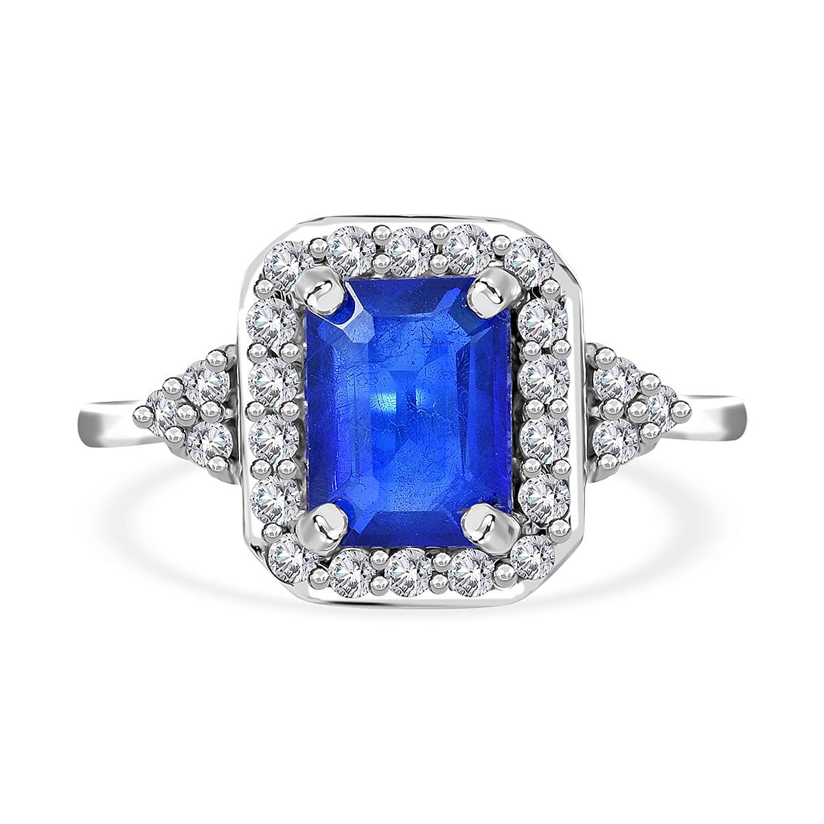 Tanzanian Cobalt Blue Spinel (DF) and White Zircon Halo Ring in Platinum Over Sterling Silver (Size 9.0) 2.40 ctw