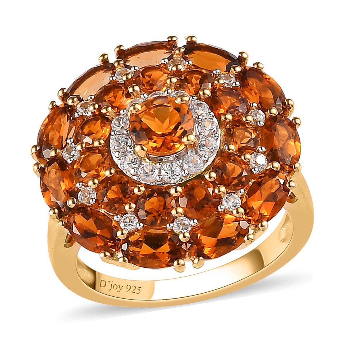 Tanzanian Golden Tourmaline and White Zircon Cocktail Ring in Vermeil Yellow Gold Over Sterling Silver (Size 7.0) 4.30 ctw