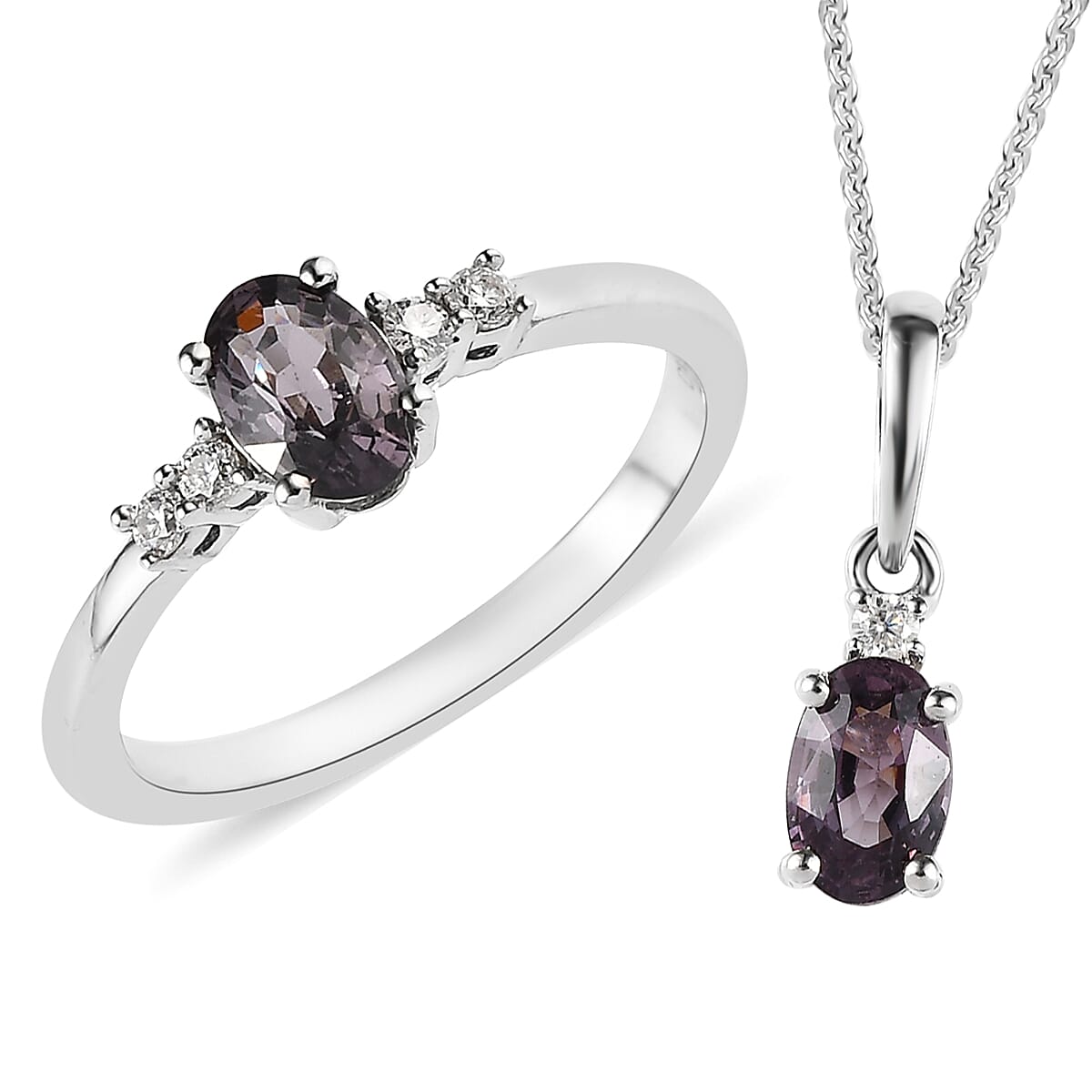 Tanzanian Lavender Spinel and Moissanite Ring and Pendant Necklace 20 Inches in Platinum Over Sterling Silver 1.25 ctw