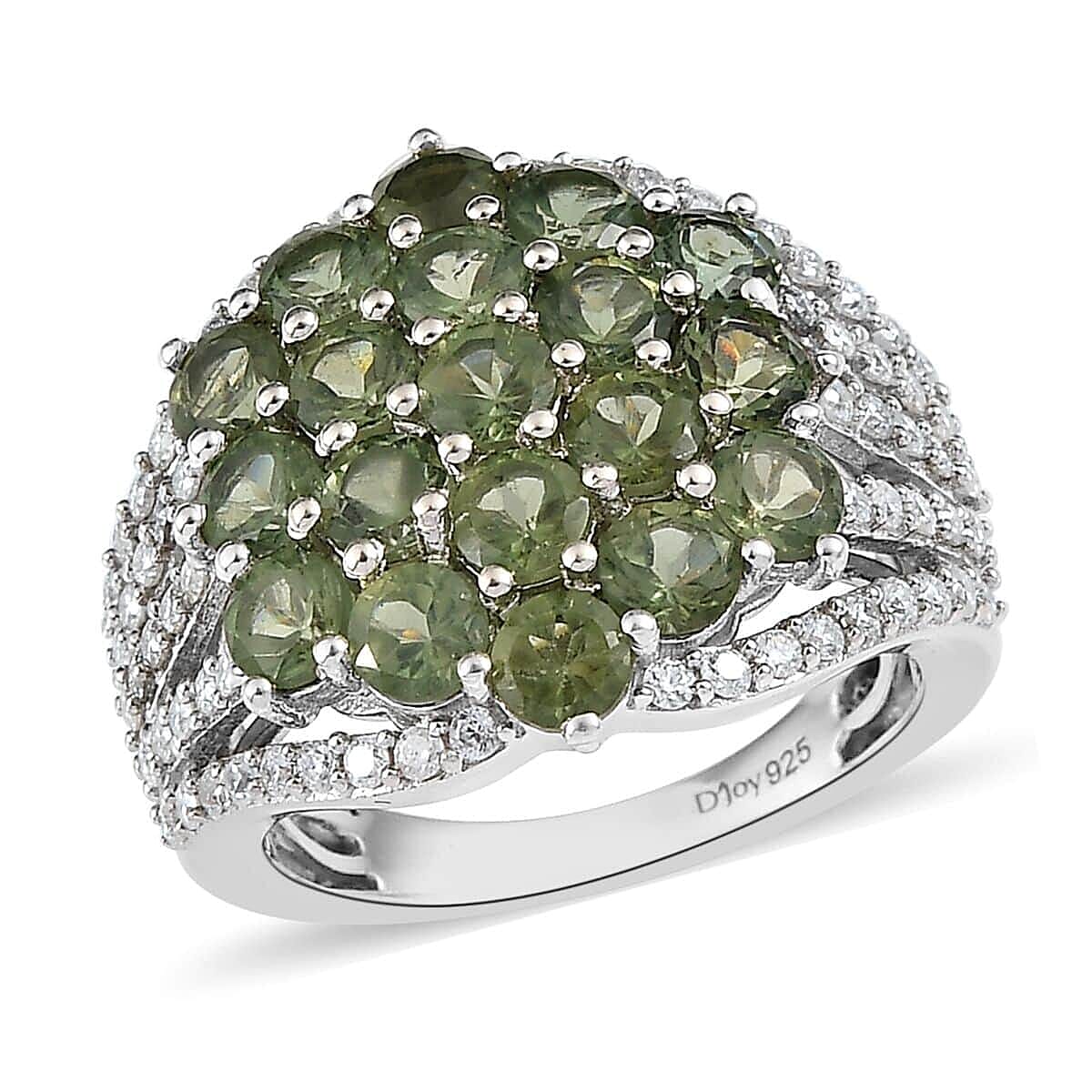 Tanzanian Natural Green Apatite and Moissanite Split Shank Ring in Platinum Over Sterling Silver (Size 6.0) 4.35 ctw