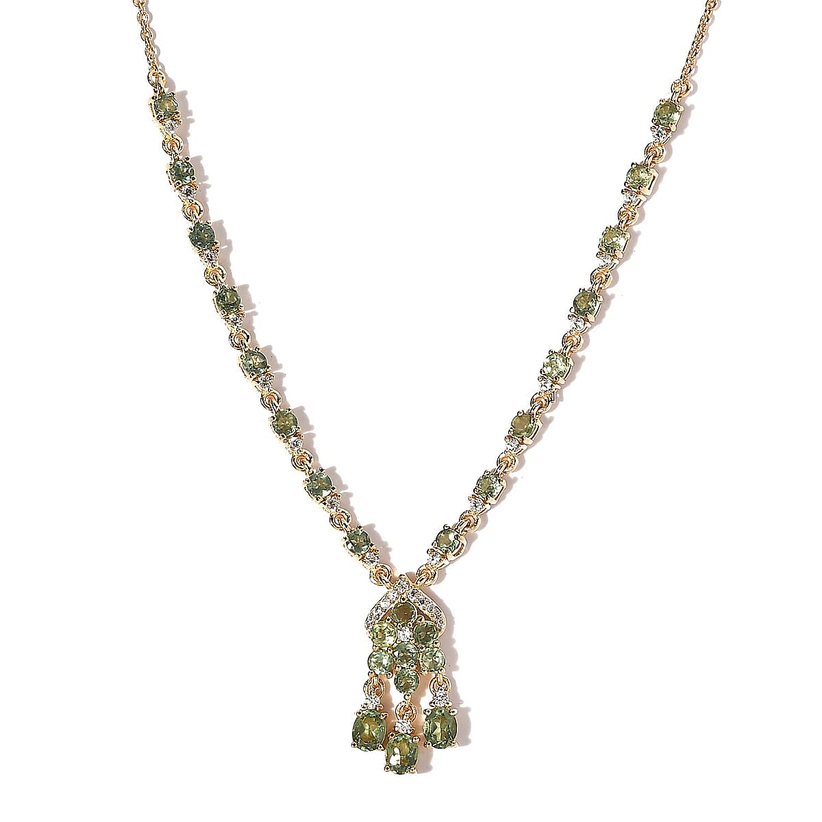 Tanzanian Natural Green Apatite and White Zircon Necklace 18 Inches in Vermeil Yellow Gold Over Sterling Silver 4.50 ctw