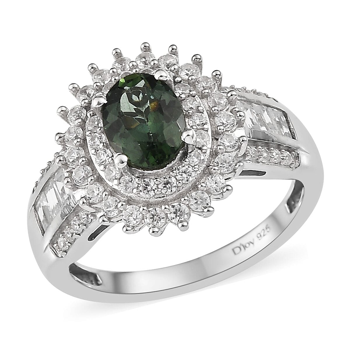 Tanzanian Natural Green Apatite and White Zircon Ring in Platinum Over Sterling Silver (Size 7.0) 2.75 ctw