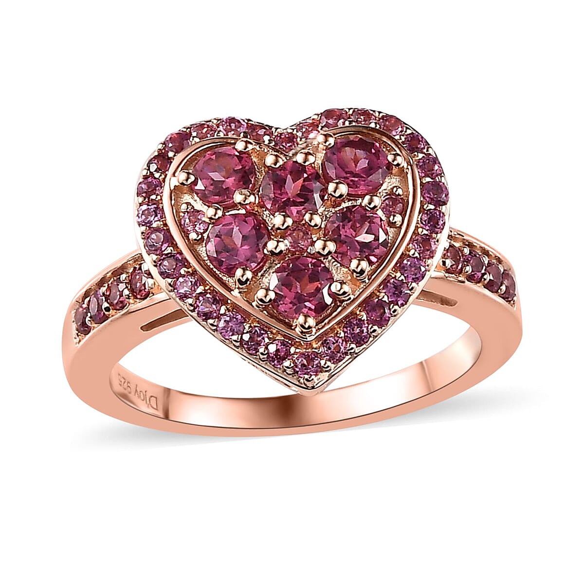 Tanzanian Wine Garnet and Lotus Garnet Heart Ring in Vermeil Rose Gold Over Sterling Silver (Size 5.0) 1.25 ctw