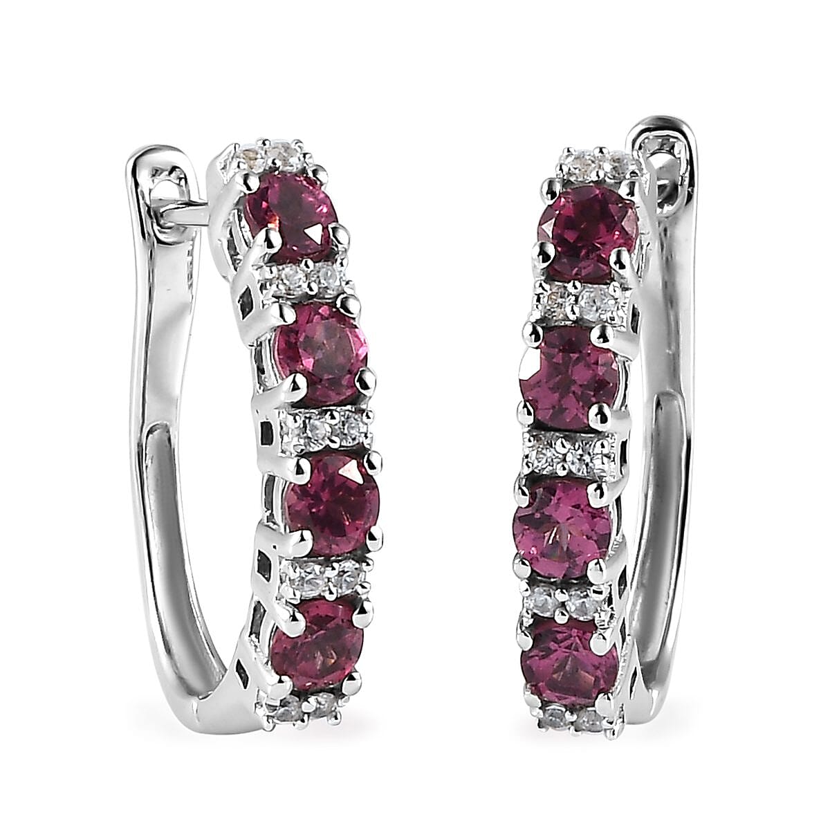 Tanzanian Wine Garnet and White Zircon Hoop Earrings in Platinum Over Sterling Silver 2.00 ctw