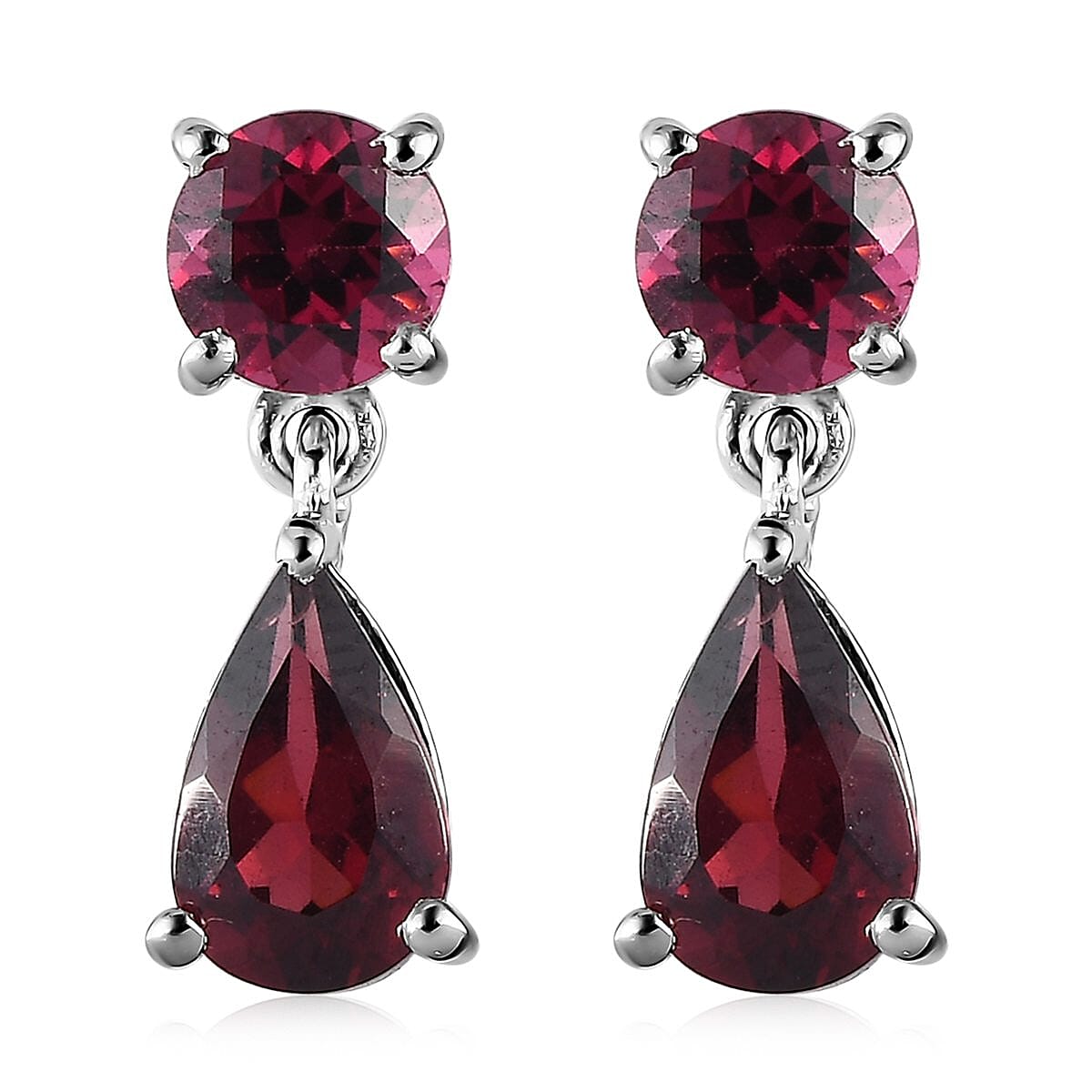 Tanzanian Wine Garnet Dangling Earrings in Platinum Over Sterling Silver 3.00 ctw