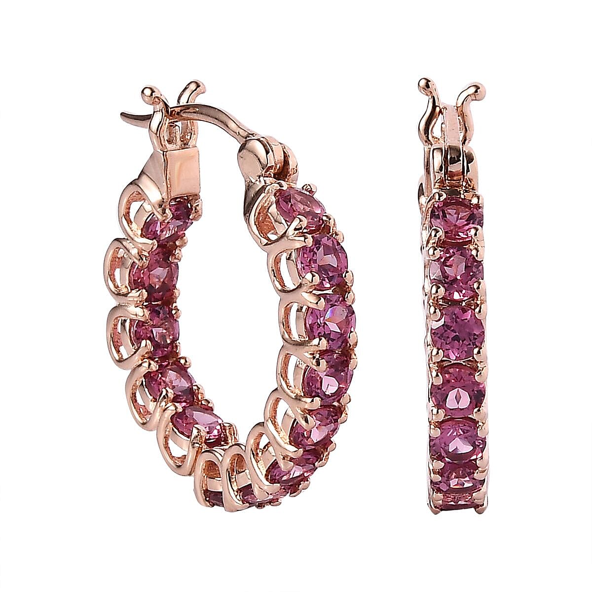Tanzanian Wine Garnet Inside Out Hoop Earrings in Vermeil Rose Gold Over Sterling Silver 3.75 ctw