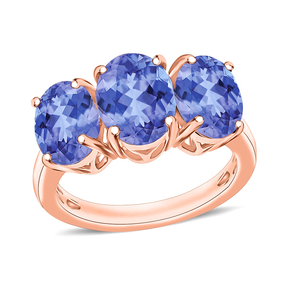 Tanzanite 4.50 ctw 3 Stone Ring in 18K Vermeil Rose Gold Over Sterling Silver (Size 7.0) (Del. in 10-12 Days)