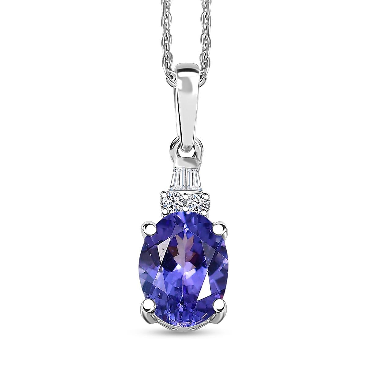 Tanzanite and Luxuriant Lab Grown Diamond G-H SI 1.40 ctw Midnight Blue Pendant Necklace in Rhodium Over Sterling Silver 20 Inches