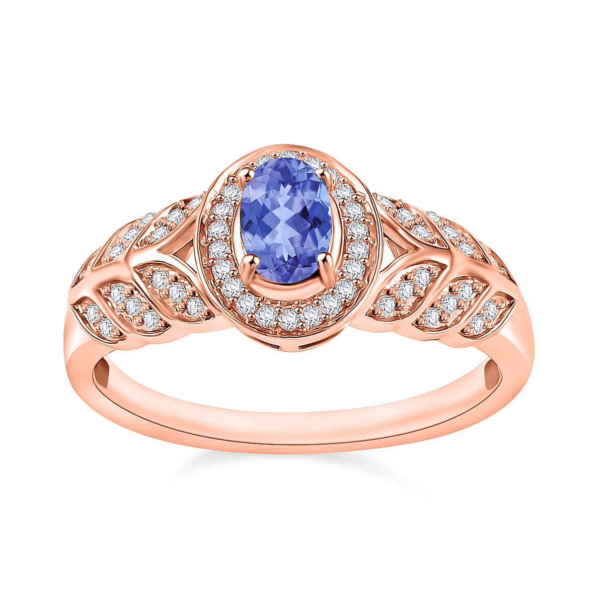 Tanzanite and Moissanite 0.69 ctw Ring in 18K Vermeil Rose Gold Over Sterling Silver (Size 9.5) (Del. in 10-12 Days)