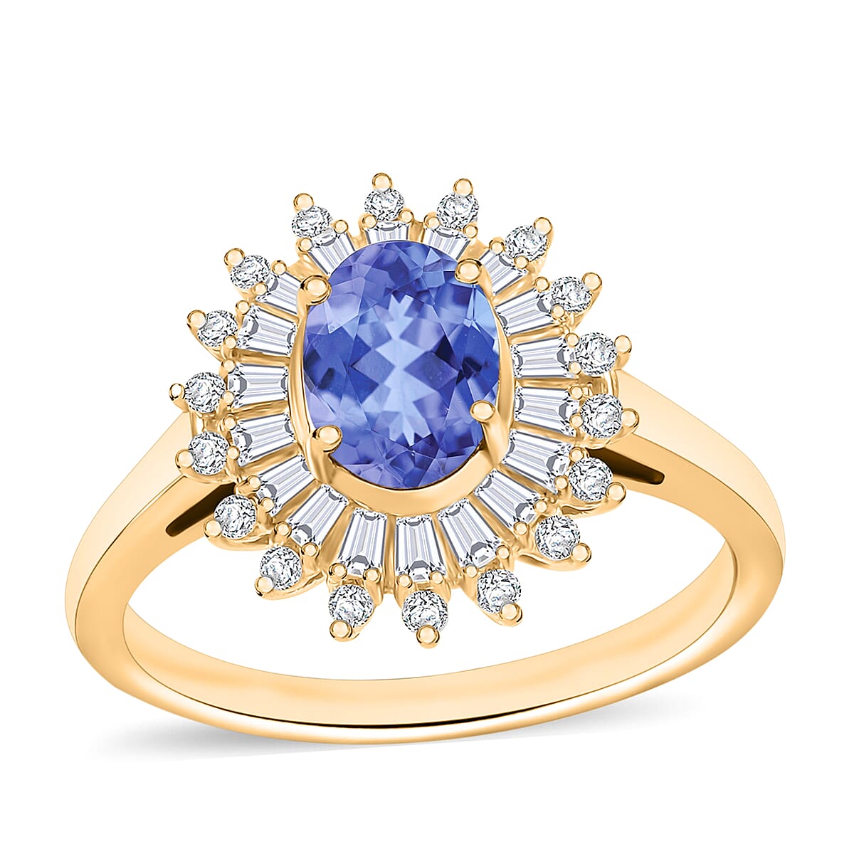 Tanzanite and Moissanite 2.48 ctw Sunburst Ring in 18K Vermeil Yellow Gold Over Sterling Silver (Size 7.0) (Del. in 10-12 Days)