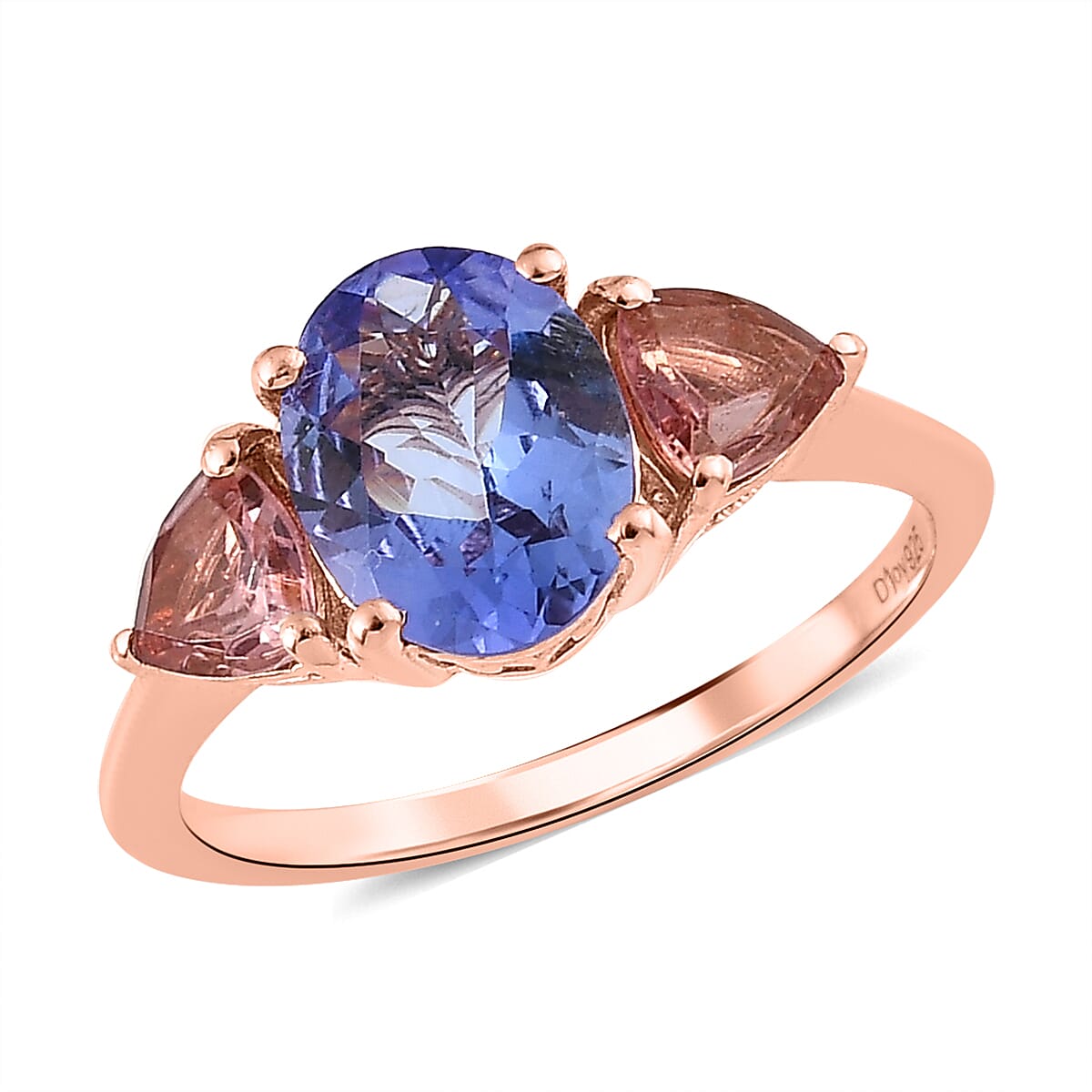 Tanzanite and Morro Redondo Pink Tourmaline 3 Stone Ring in Vermeil Rose Gold Over Sterling Silver (Size 7.0) 2.50 ctw