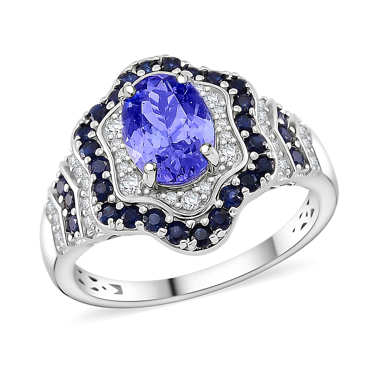 Tanzanite and Multi Gemstone 2.20 ctw Tidal Majesty Ring in Rhodium Over Sterling Silver (Size 10.0)