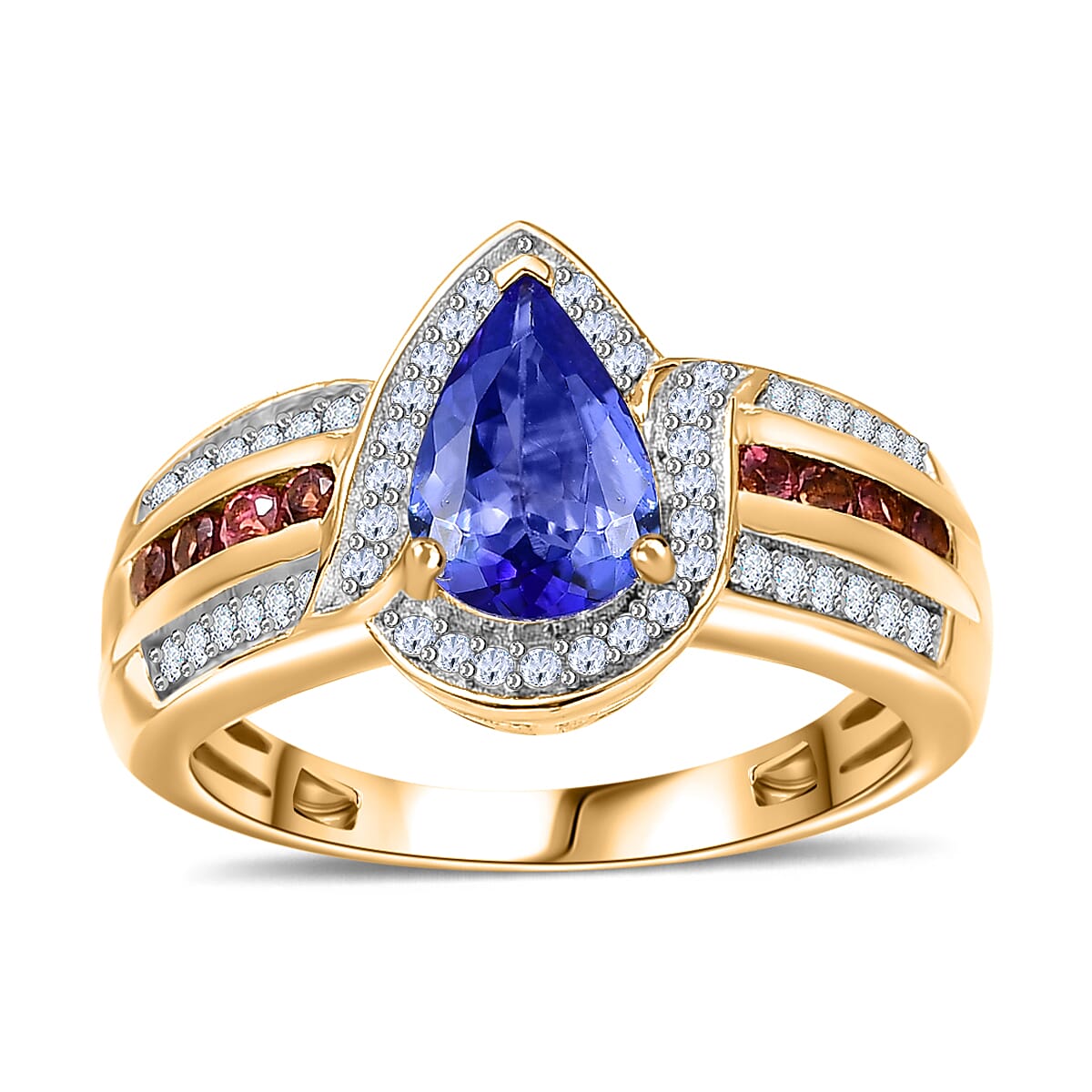 Tanzanite and Multi Gemstone Euphoria Ring in 18K Vermeil Yellow Gold Over Sterling Silver (Size 8.0) 1.70 ctw