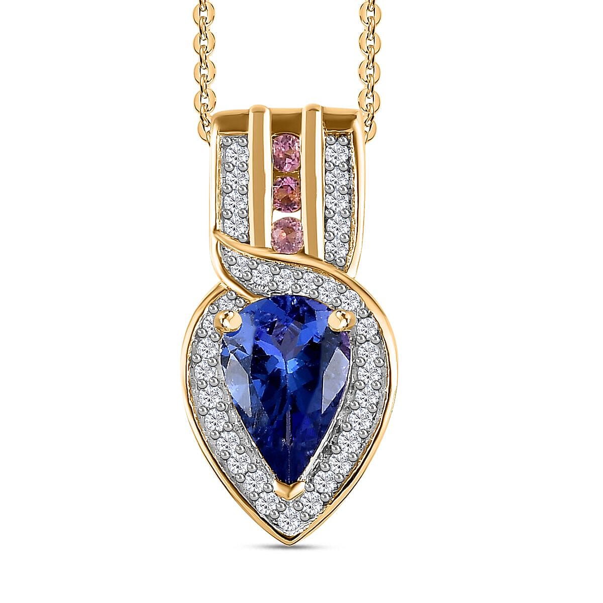 Tanzanite and Multi Gemstone Pendant Necklace 20 Inches in 18K Vermeil Yellow Gold Over Sterling Silver 1.65 ctw