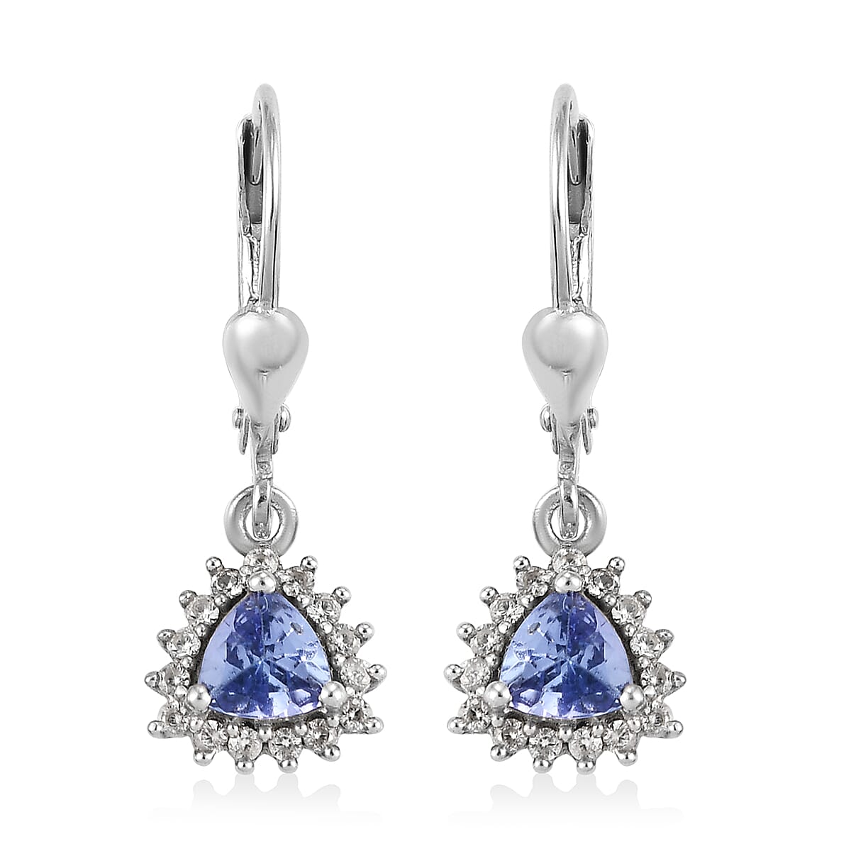 Tanzanite and Natural White Zircon Lever Back Earrings in Platinum Over Sterling Silver 1.15 ctw
