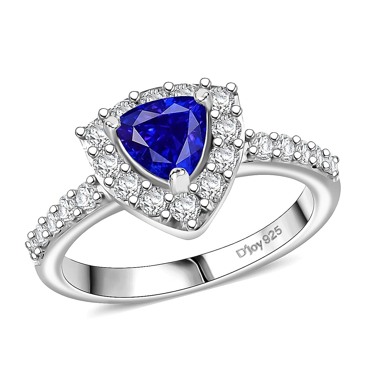 Tanzanite and Natural White Zircon Ring in Platinum Over Sterling Silver (Size 7.0) 1.10 ctw