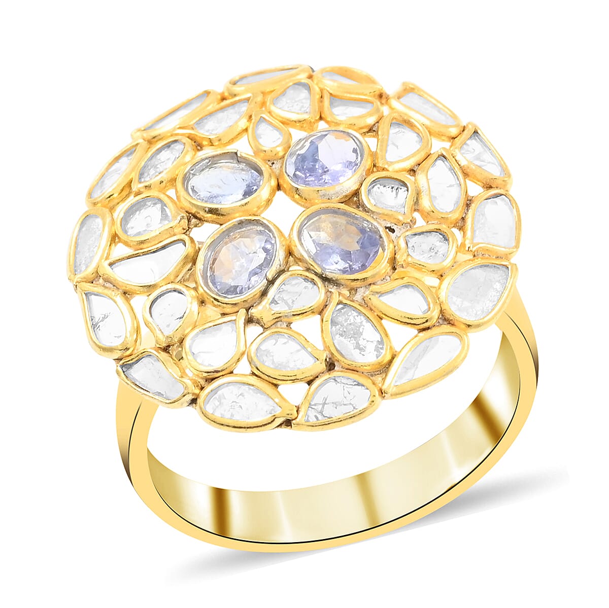 Tanzanite and Polki Diamond Round Floral Ring in 14K Yellow Gold Over Sterling Silver (Size 8.0) 1.60 ctw