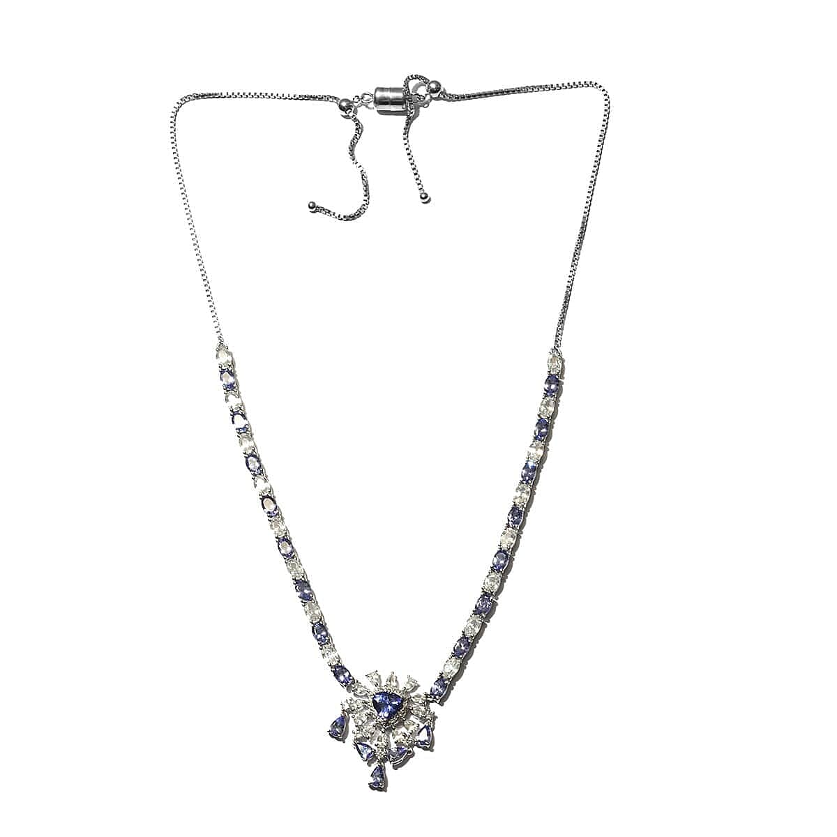 Tanzanite and White Sapphire Necklace 24 Inches in Platinum Over Sterling Silver 22.35 ctw