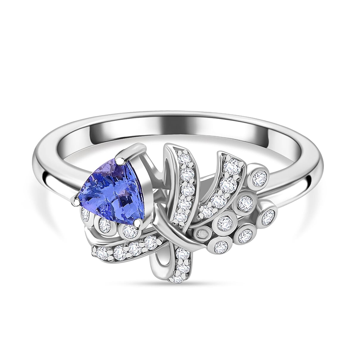 Tanzanite and White Zircon 0.65 ctw Love Knot Ring in Rhodium Over Sterling Silver (Size 6.0)