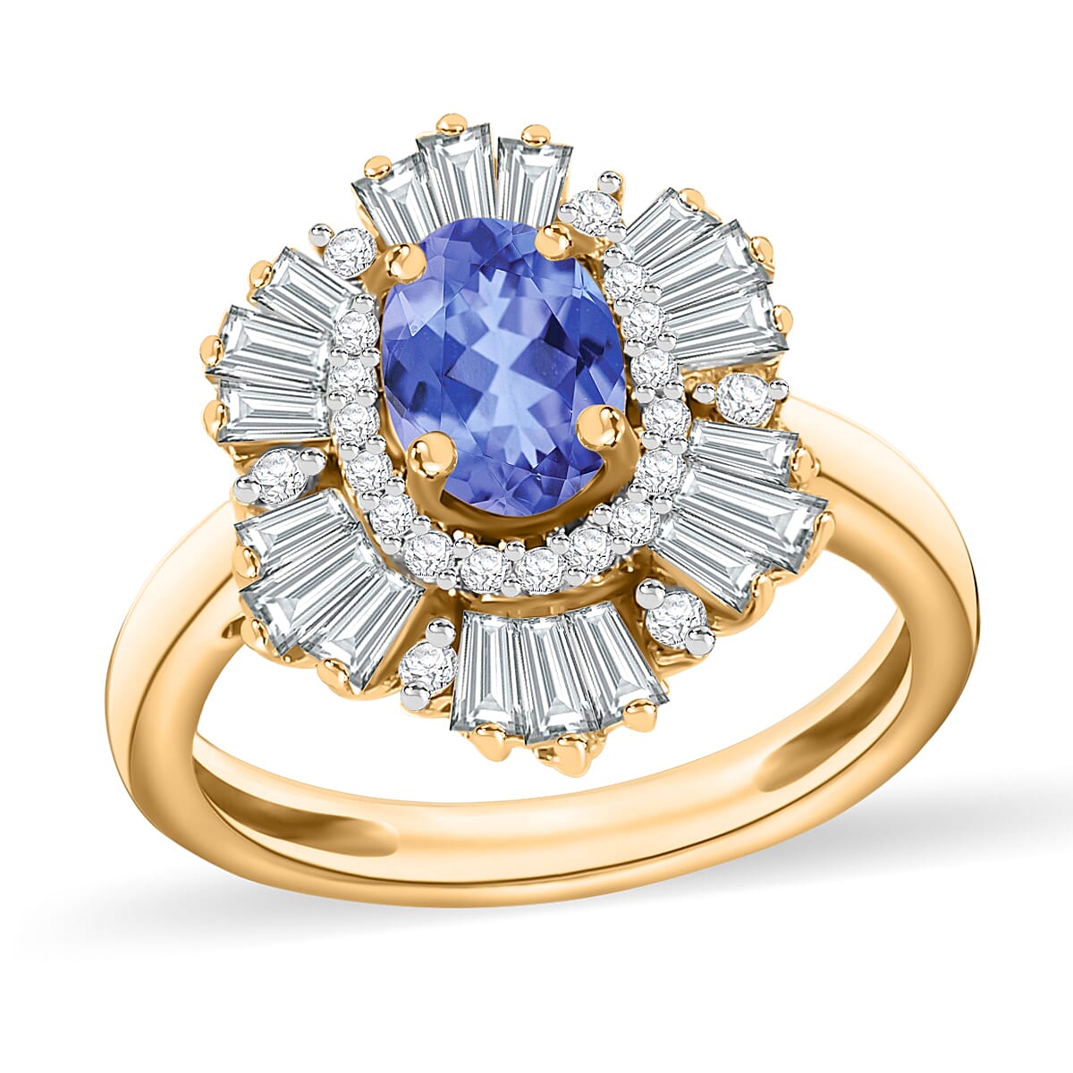 Tanzanite and White Zircon 2.85 ctw Ring in 18K Vermeil Yellow Gold Over Sterling Silver (Size 9.5) (Del. in 10-12 Days)