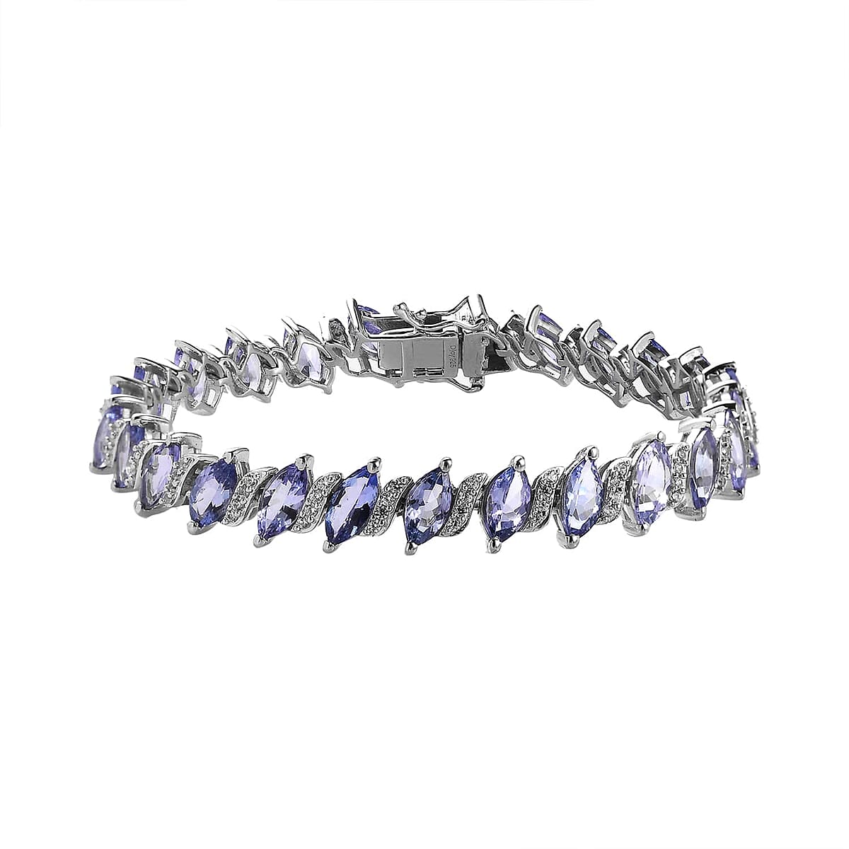 Unveil a galaxy of luxury with this tanzanite and white zircon bracelet. Set against the ethereal backdrop of platinum over sterling silver, marquise-cut tanzanite stones intersperse with trios of radiant white zircon, weaving a tale of celestial beauty and earthly charm. Embrace an elegance that is both timeless and otherworldly.
