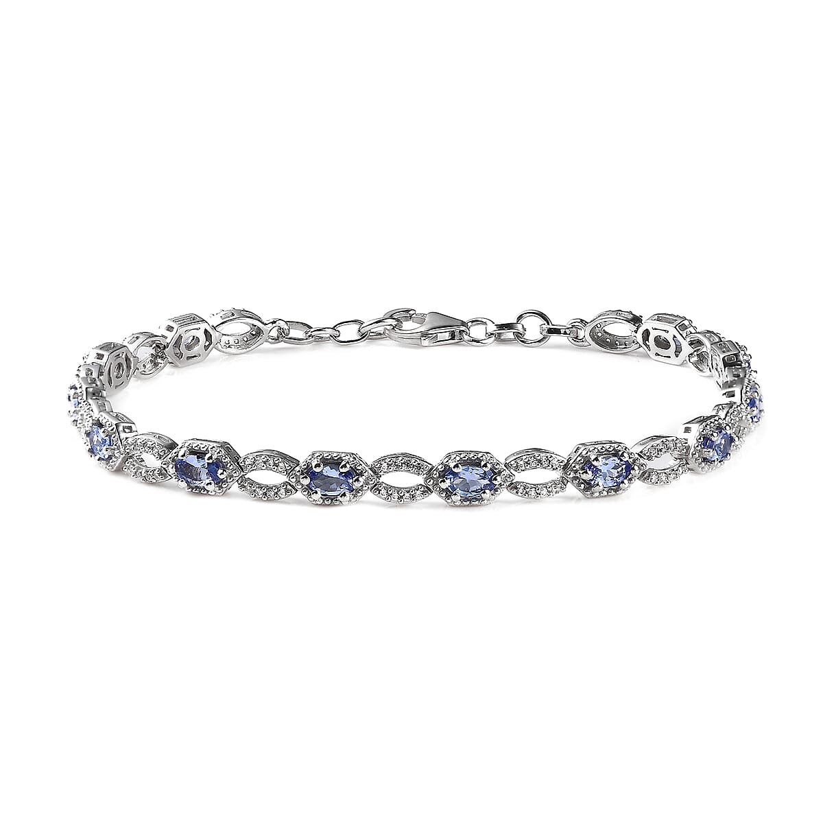 Tanzanite and White Zircon Bracelet in Platinum Over Sterling Silver (8.00 In) 3.90 ctw