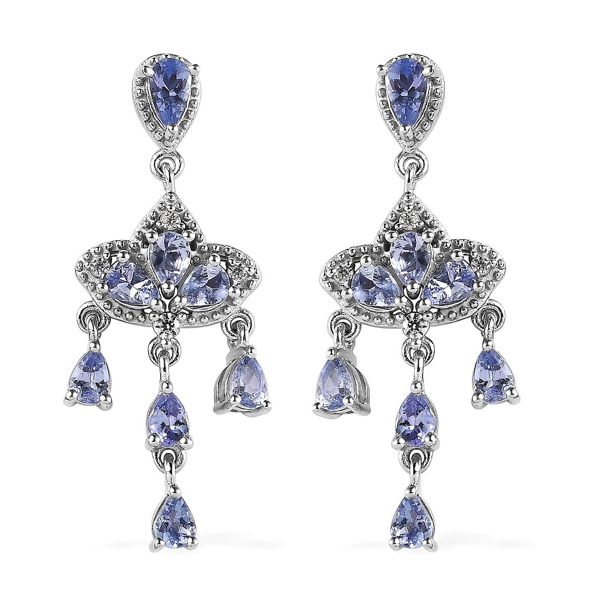 Tanzanite and White Zircon Chandelier Earrings in Platinum Over Sterling Silver 2.50 ctw