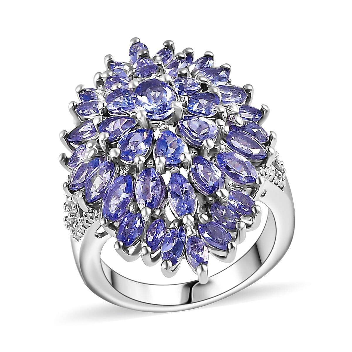 Tanzanite and White Zircon Dahlia Floral Spray Ring in Platinum Over Sterling Silver (Size 8.0) 5.10 ctw