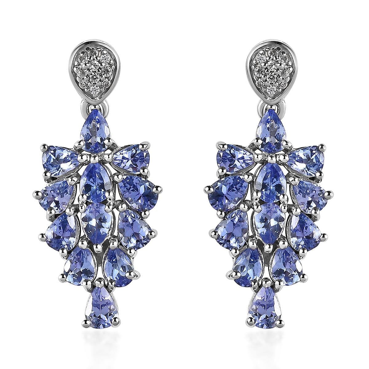 Tanzanite and White Zircon Earrings in Platinum Over Sterling Silver 3.60 ctw
