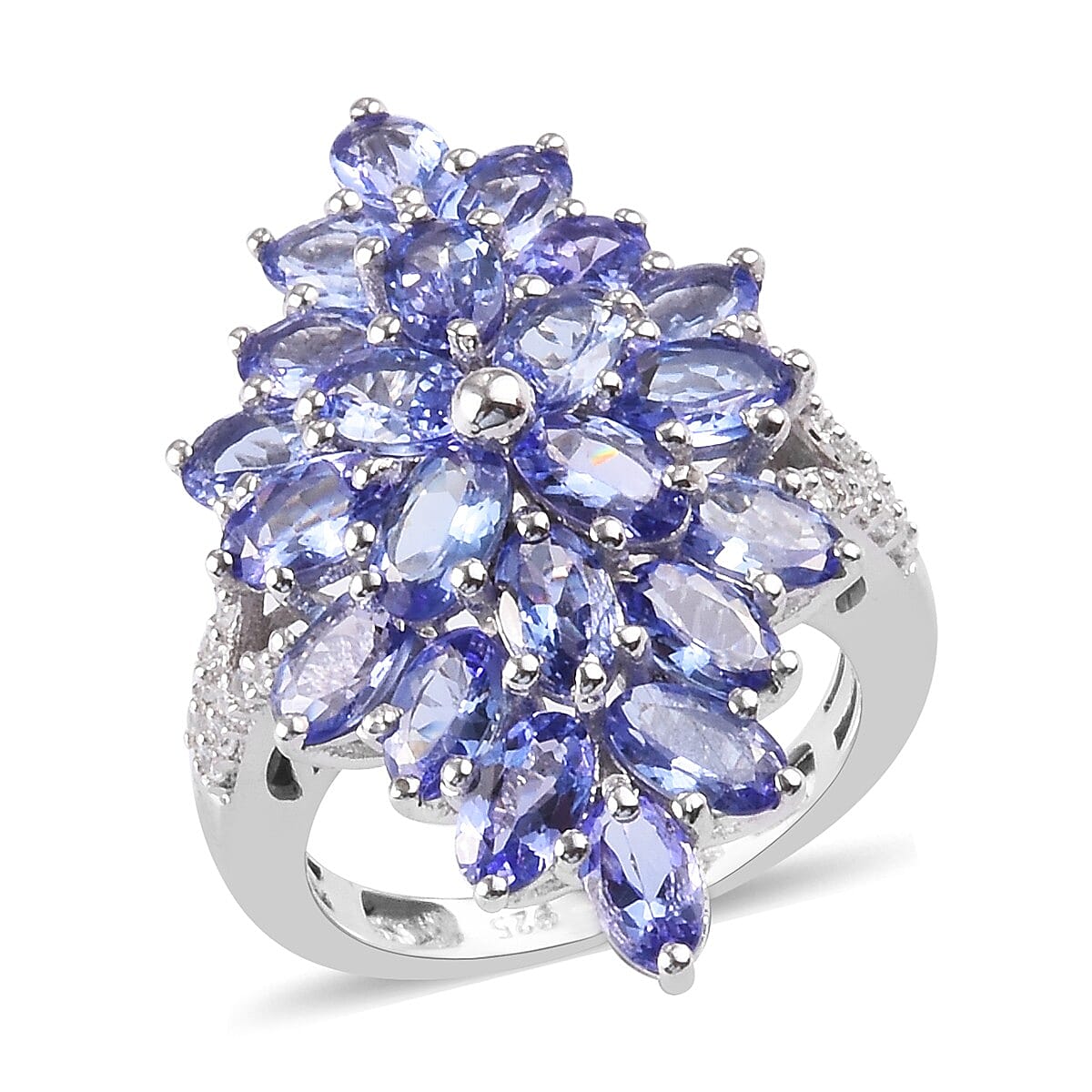 Tanzanite and Zircon Ring in Platinum Over Sterling Silver (Size 5.0) 5.20 ctw