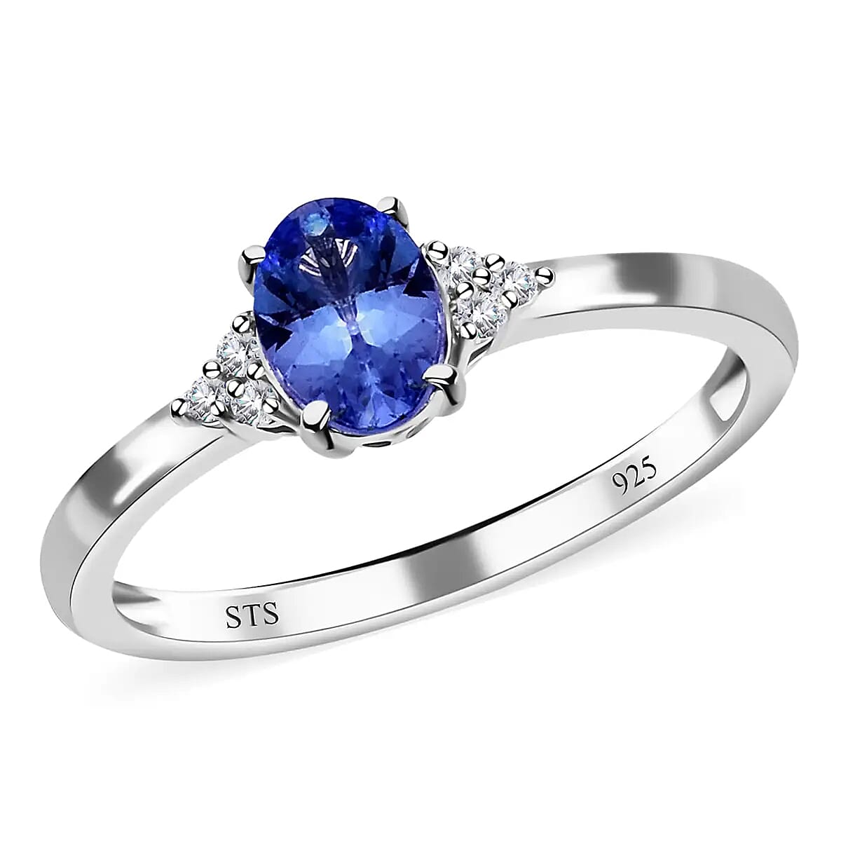 Introducing our exquisite tanzanite ring in sterling silver, an enchanting piece of jewelry that is sure to capture your heart. The center gemstone of this sterling silver ring is an oval shaped tanzanite that is prized for its stunning color-changing properties. Both shank sides boast a trio of sparkling Cambodian natural white zircons adding an extra touch of elegance to the design.