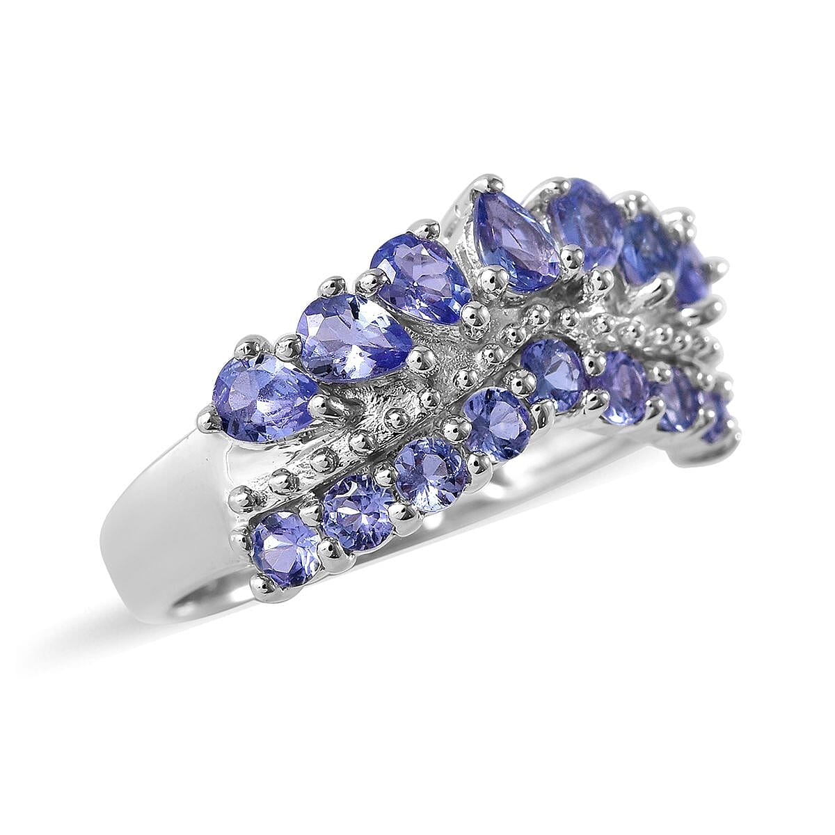 Tanzanite Chevron Ring in Platinum Over Sterling Silver (Size 8.0) 1.65 ctw