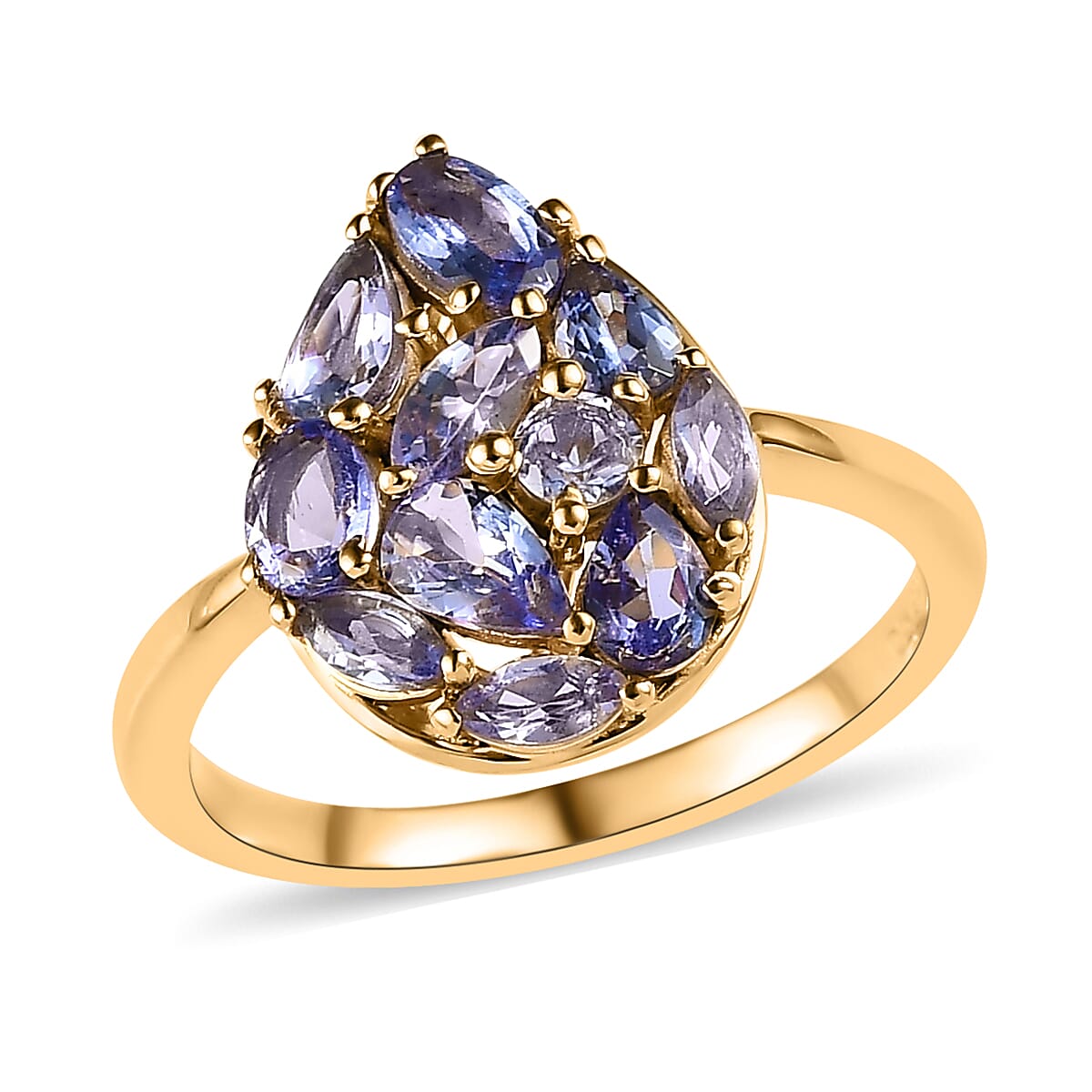 Tanzanite Cluster Ring in Vermeil Yellow Gold Over Sterling Silver (Size 9.0) 1.70 ctw
