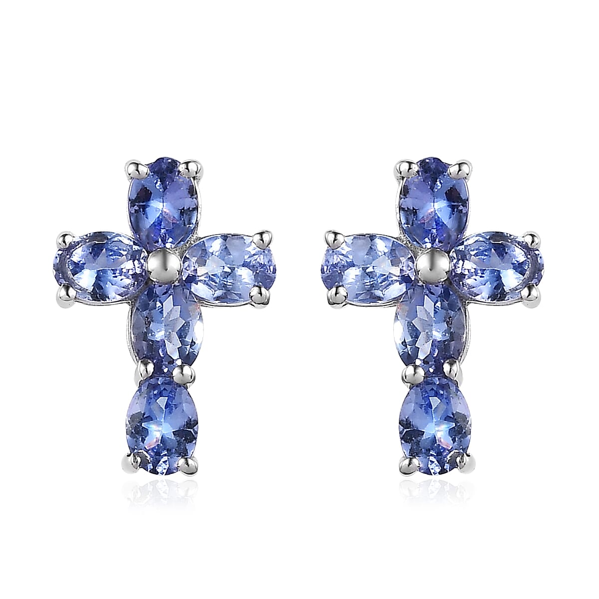 Tanzanite Cross Earrings in Platinum Over Sterling Silver 1.75 ctw