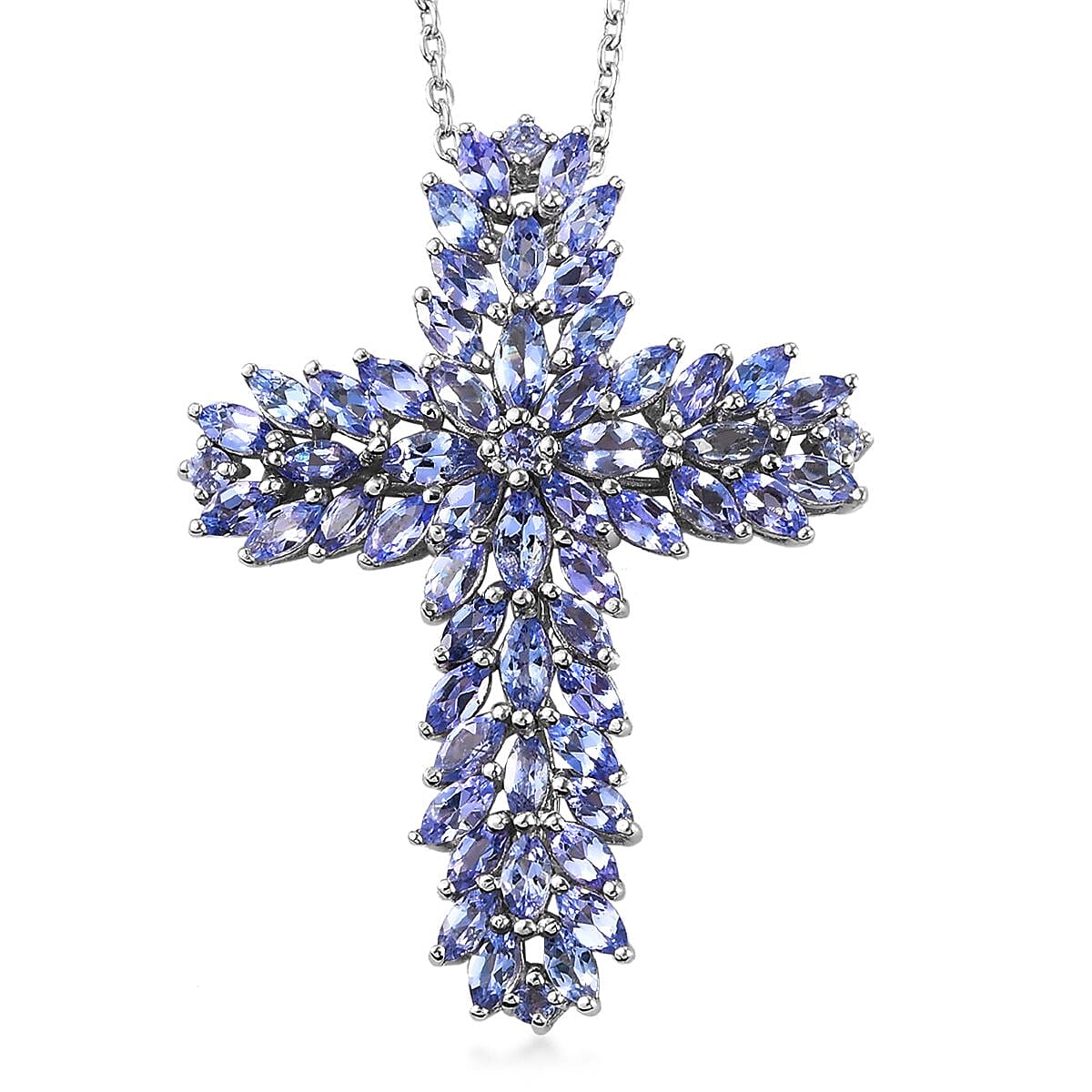 Tanzanite Cross Pendant Necklace 18 Inches in Platinum Over Sterling Silver 5.15 ctw