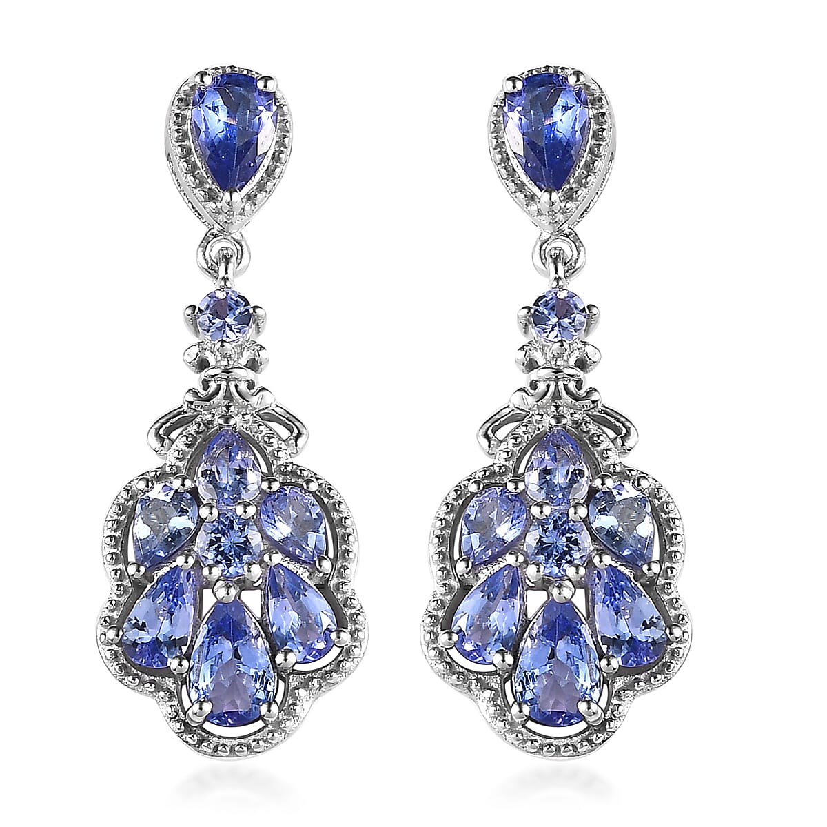 Tanzanite Dangle Earrings in Platinum Over Sterling Silver 3.50 ctw