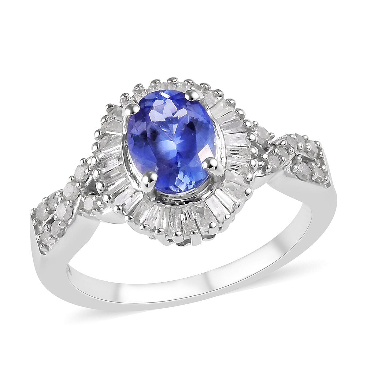 Tanzanite, Diamond (0.48 ct) Ring in Platinum Over Sterling Silver (Size 9.0) 1.75 ctw